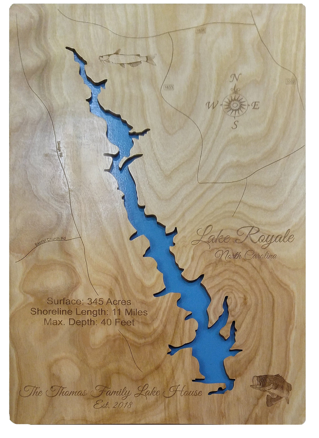 Lake Royale, NC 3D Wood Map Cabin Decor Lake House Dรฉcor Nautical