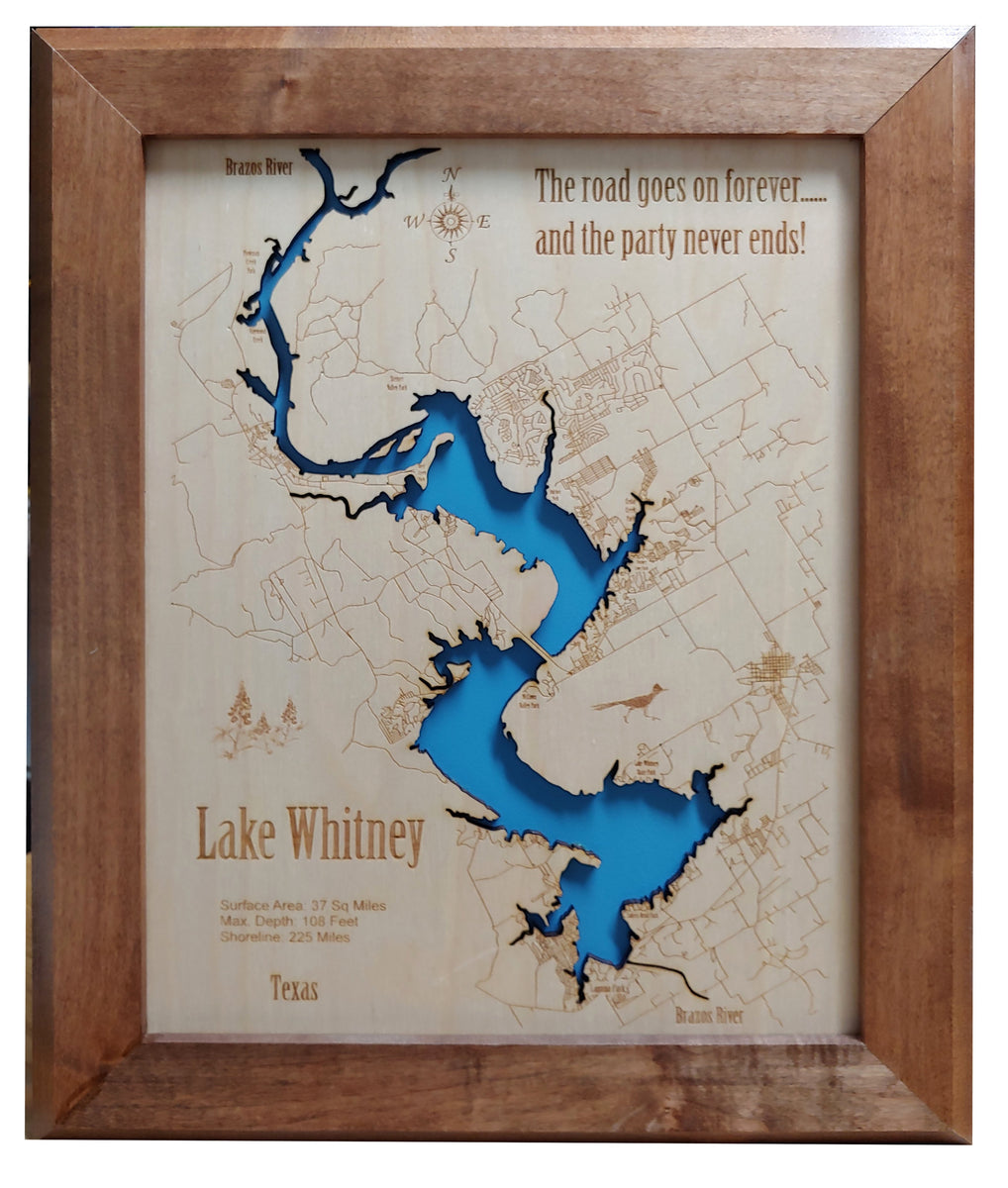 Lake Whitney, Texas laser cut wood map